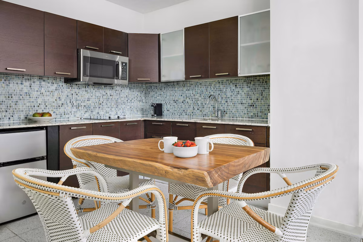 Treat yourself to an unforgettable stay at Marriott Vacation Club®, South Beach, part of The Marriott Vacation Clubs™ City Collection, on Miami Beach’s swanky Ocean Drive. Near electrifying nightlife, café-style dining, and upscale shopping, our vacation ownership rental property offers open and airy studios, guest rooms and two-bedroom suites across from the beach. We are steps to many of the finest restaurants in Miami, Florida, and just minutes to the South Beach Art Deco District, Kaseya Center and the markets on Lincoln Road. Unwind at our stately Mediterranean Revival gem with a historic exterior and unique contemporary design, including a landmark red tile roof, graceful columns, and updated accommodations. Stay connected with complimentary Wi-Fi – all with no destination fees. Grab a drink and gaze out over Miami Beach from our exquisite Rooftop Terrace while enjoying panoramic views and warm Florida breezes.