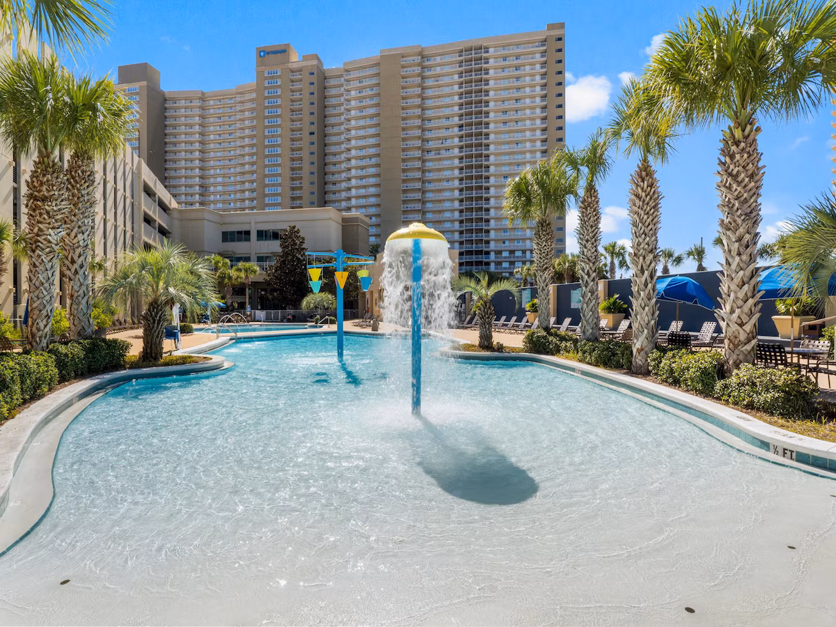 This premier property is located along the sandy white stretch of pristine beach a mile from Pier Park shopping complex. The amenities include three large pools, tiki bar, hot tubs, grill areas, a fully stocked gift shop, as well as a Starbucks on site. In addition there is sky-bar sports bar, full workout room with state of the art equipment and of course covered parking. Emerald Beach Resort was designed to provide you and your family with the most enjoyable vacation experience imaginable. Please see our amenities and community schedule areas on the website to keep up with any current events and special activities. Welcome to one of Panama City Beach’s finest resorts.