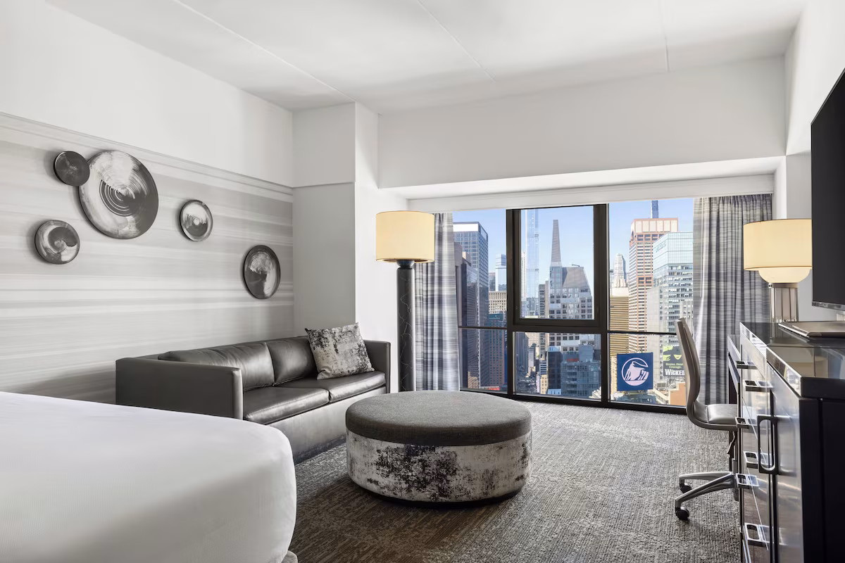 Experience the vibrant energy of Manhattan at the newly renovated New York Marriott Marquis, located in the heart of Times Square. As an iconic fixture of the city, our hotel offers easy access to many of NYC’s most exciting attractions, including the world-famous Theater District, Rockefeller Center, and Radio City Music Hall. Indulge in our redesigned restaurants, featuring bold New York flavors and innovative menus paired with stunning views of Times Square.