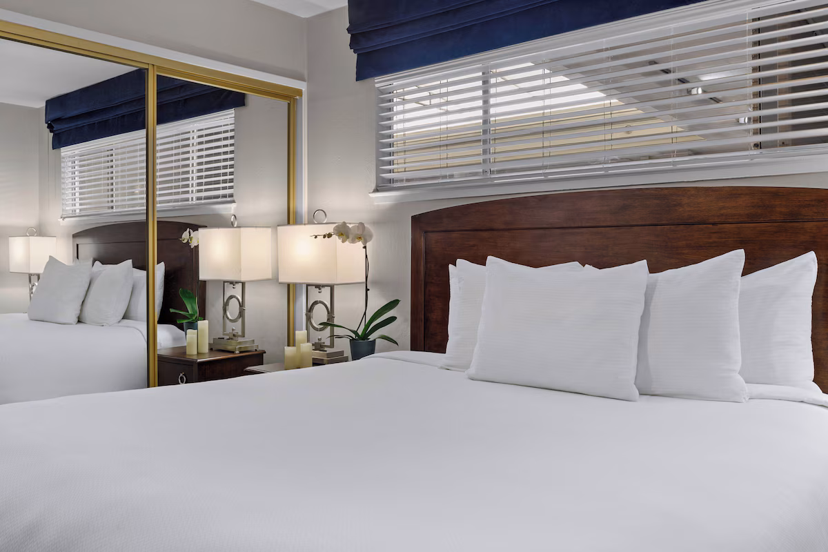 With 24 spacious suites (newly renovated in 2022), The Suites at Fisherman’s Wharf is the perfect choice for adventurous travelers who want to leave their heart in San Francisco. The spacious suites offer you comfortable one or two-bedroom floor plans, each tastefully appointed with the furnishings you’d expect from a sophisticated San Francisco hotel. The intimate ambiance of the property is evident in features like the private balconies and patios available in selected suites. Located next to the Hyde Street Cable Car stop, you’re just a short stroll from the sensory pleasures of Fisherman’s Wharf, or the turn of the century ambiance of The Cannery, Pier 39, or the undersea secrets of the Aquarium of the Bay. This lyrical city by the bay will take you wherever your imagination allows, and The Suites at Fisherman’s Wharf San Francisco resort is the perfect place to begin your journey.