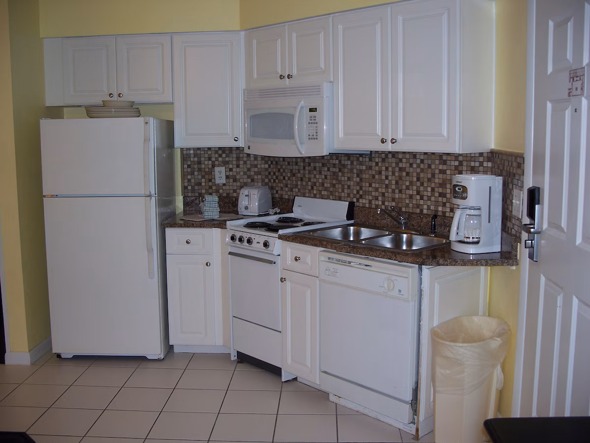 On the shores of one of the only pedestrian beaches in Daytona Beach, Ocean Walk Resort offers spacious one-, two-, three-bedroom and penthouse resort suites that comfortably sleep four to ten guests in 500 – 1,455 square feet. Suites feature partial or full kitchens, private bedrooms and separate living/dining areas. Many include a washer/dryer, balcony and whirlpool tub. Resort fun includes four pools, a lazy river, water slide, fitness center, miniature golf, game room and activities center. Daily maid service is not provided. On site parking is limited to one (1) spot per unit regardless of unit occupancy. Additional public parking located across street for a fee. Studio/suites are interior/city view and do not have a balcony. Check in begins at 4pm. Please note: Some units at Ocean Walk Resort are privately owned condominiums and are not managed, serviced or rented through Travel & Leisure Co. For rental information of Travel + Leisure Co. managed units see Extra Holidays.