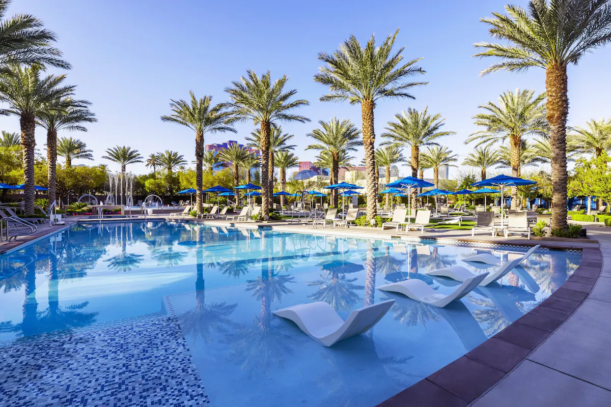 Bright lights, slot machines and roulette wheels – Vegas knows how to tickle the senses. A desert oasis of hospitality, Club Wyndham Desert Blue is tucked away one mile off The Strip and offers studio and one-bedroom resort suites that sleep up to four guests with partial kitchens and separate living areas. The one-bedroom suite offers a private room, separate dining area and views of The Strip. Enjoy two outdoor pools and hot tubs, cabanas, poolside bar and grill, a fire pit and fitness center.