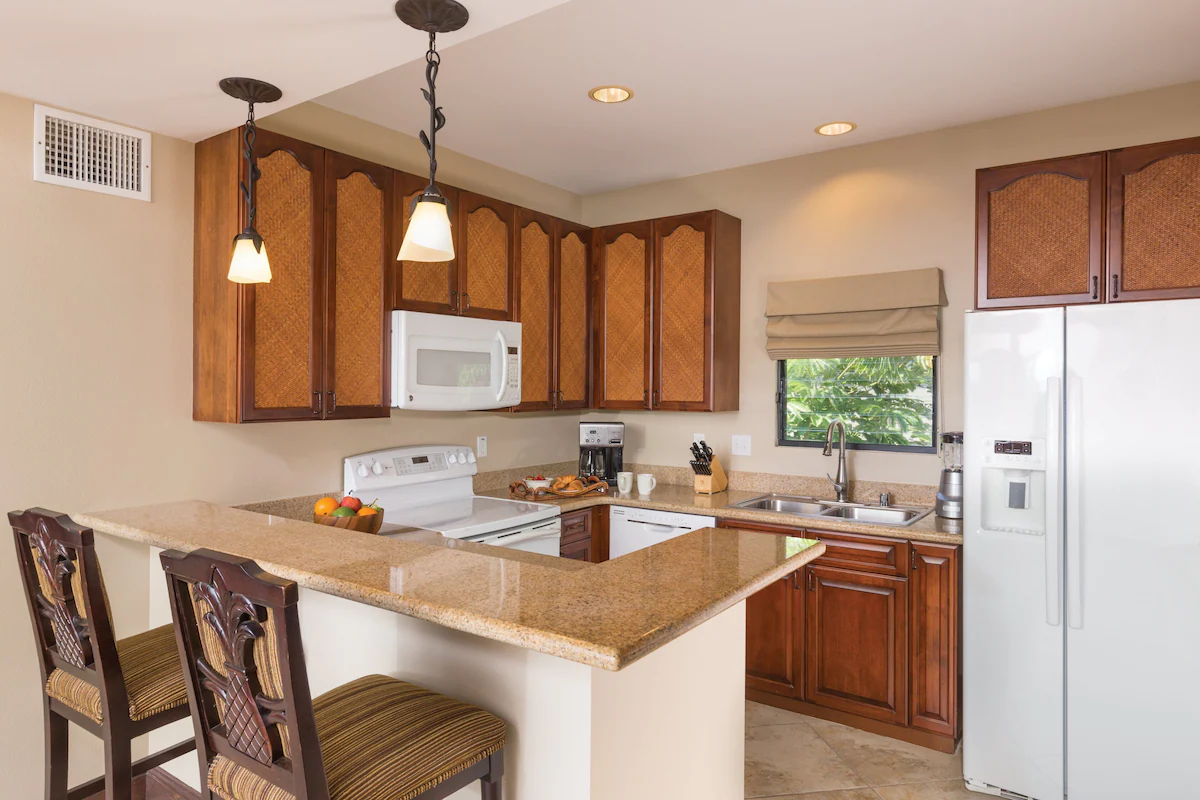 Set your cares adrift in Kailua-Kona when you reserve a two-bedroom resort suite at the Club Wyndham Kona. Furnished in traditional Hawaiian decor, these spacious two-bedroom resort suites feature two king beds and a queen sleeper sofa with a full kitchen, whirlpool tub, living/dining areas and a washer/dryer. Resort amenities are in no short supply and include two outdoor swimming pools, two whirlpool tubs, fitness center, barbecue area, business center, tour desk and concierge.