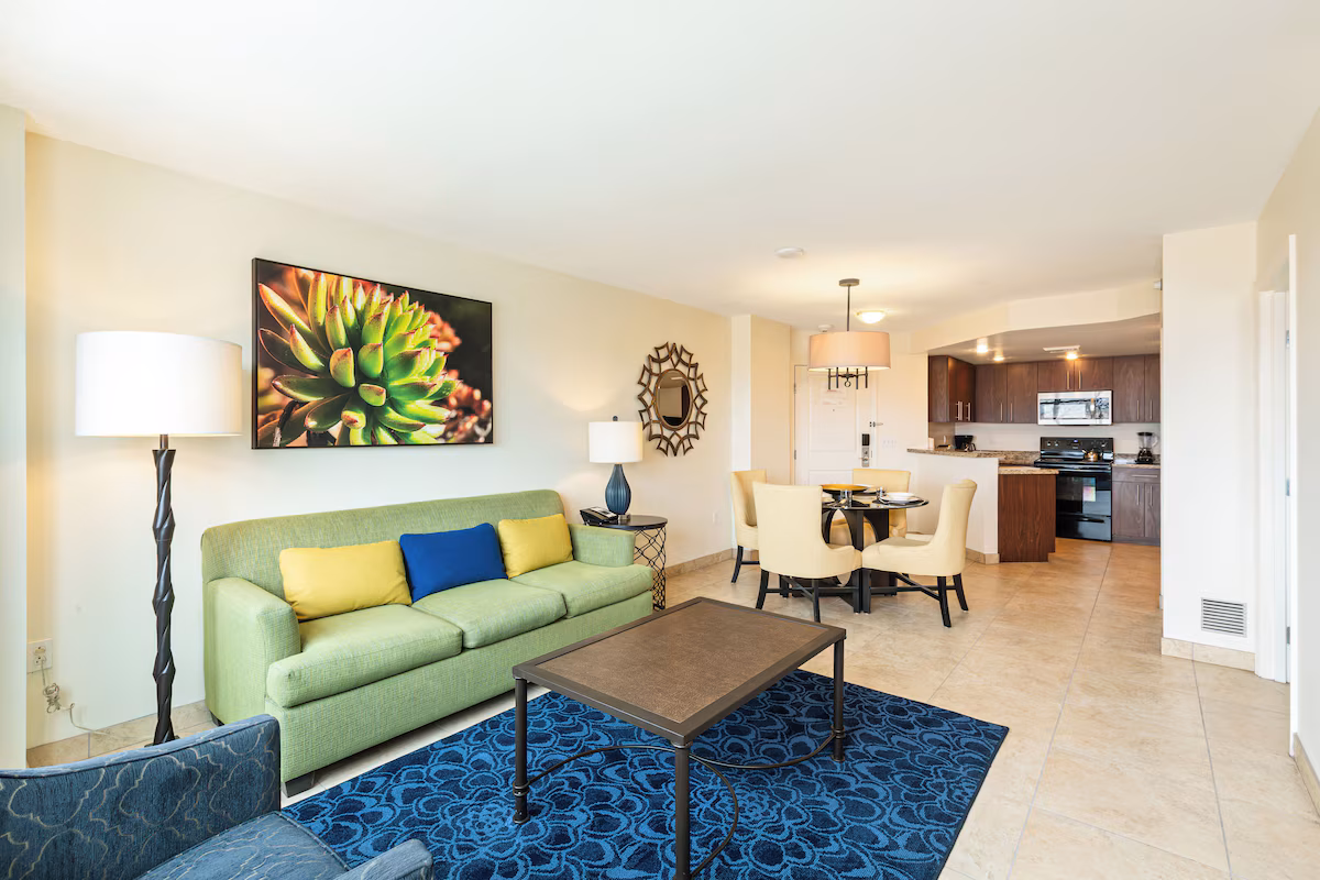 Vacationing at The Grandview at Las Vegas Resort affords you and your family the ultimate in entertainment. Situated less than six miles from the Las Vegas Strip. The Grandview at Las Vegas Resort accommodations are 1,600 square feet of combined living space featuring a common foyer with separate controlled access for each suite. The spacious one- and two-bedroom accommodations are designed for the guest’s maximum comfort. Kitchen, living room and dining room in each suite are integrated for entertaining and enjoyment. Designated suites meet Americans with Disabilities Act (ADA) requirements.